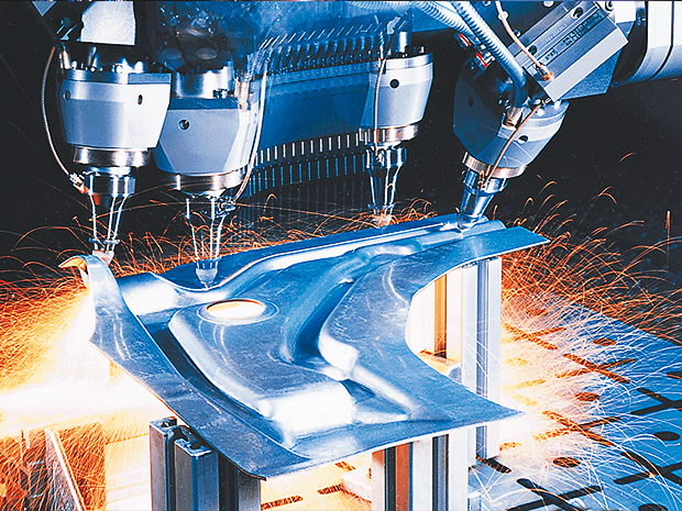 Achserweiterungen bis zu 6 m ermöglichen die Fertigung von tailored blanks sowie von sehr komplexen 3D-Teilen. Rundachsen unterstützen einfache Fügegeometrien.